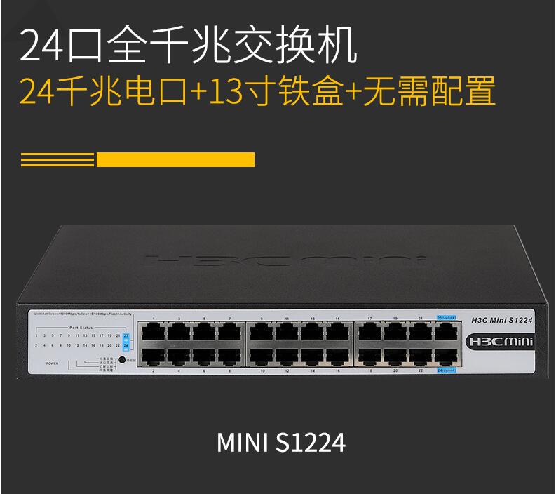 H3C華三Mini S1224 24口全千兆交換機企業(yè)級無管理非網(wǎng)管網(wǎng)絡(luò)交換器監(jiān)控防雷分線器替代S1324G